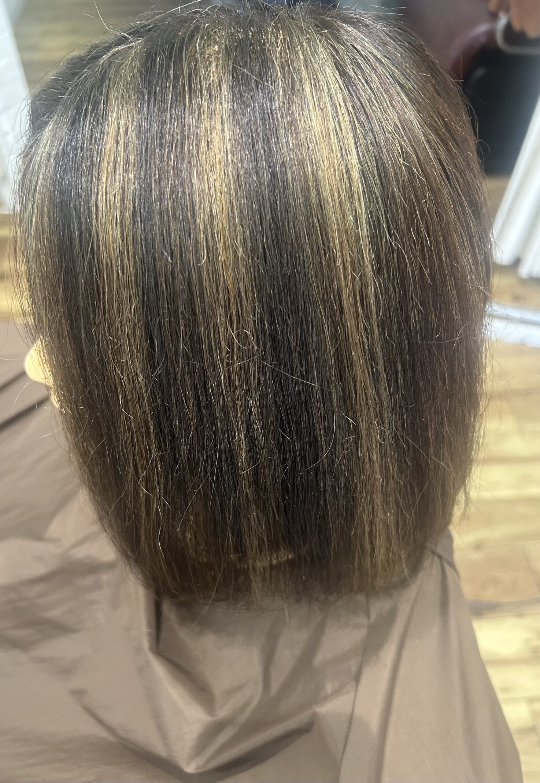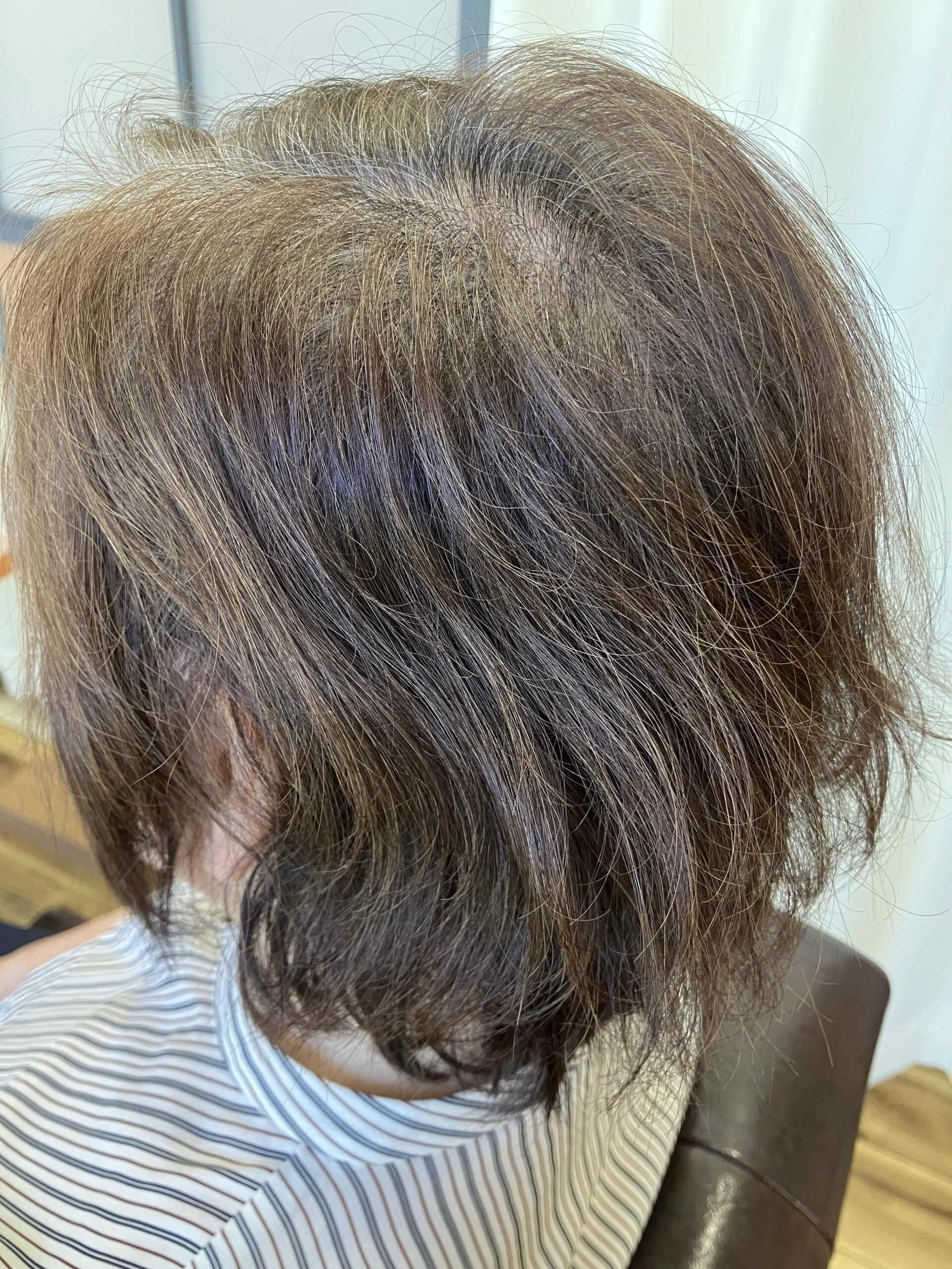 • 前回2か月前に白髪染めをして、白髪ぼかしに移行して、ハイライトはいれたいけど、目立たないようにしたいとのこと。薄っすらハイライトも残り、艶感がUP。